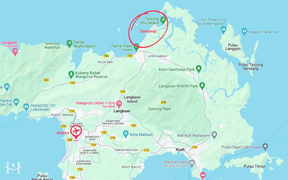 Wyspa Langkawi znajduje się w północno-zachodniej części Malezji, niedaleko granicy z Tajlandią. Na wyspie jest lotnisko, co umożliwia bezpośrednie połączenia lotnicze. Port lotniczy znajduje się w środkowo-zachodniej części wyspy.