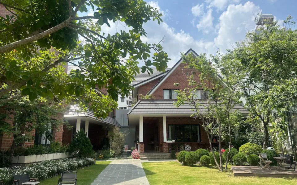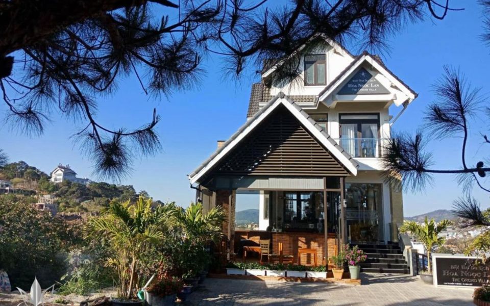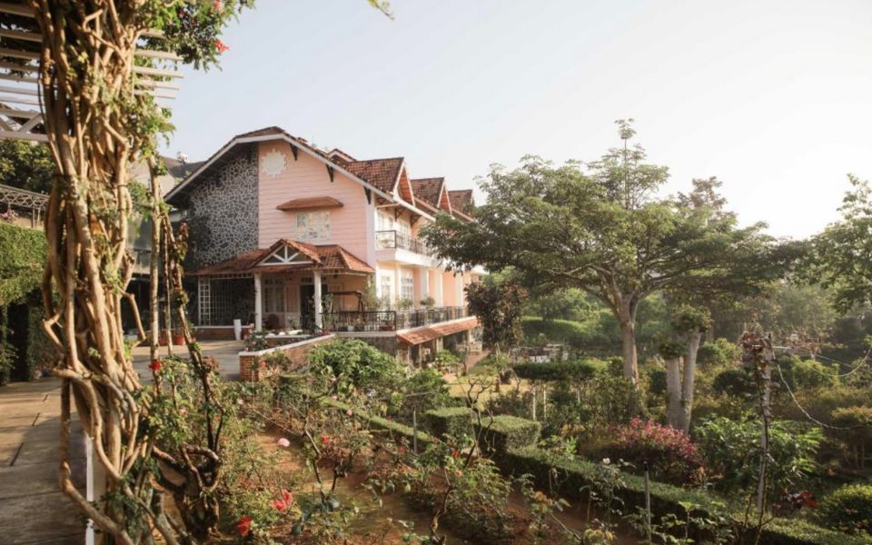 A French-style villa surrounded by a rose garden, providing a romantic atmosphere and proximity to Dalat’s tourist attractions.
