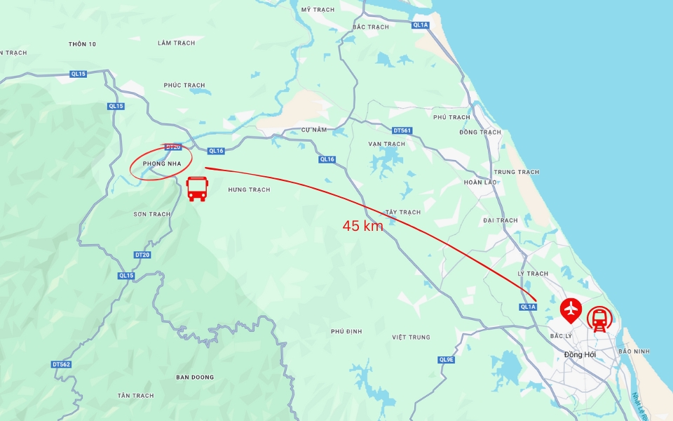 | City | Distance from Phong Nha (km) |