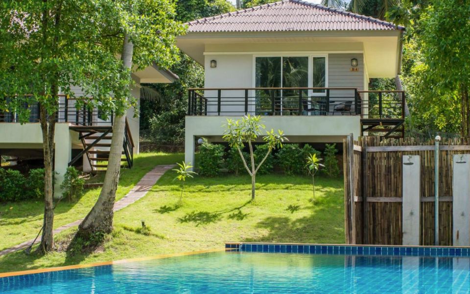 Kalani Bungalows offers traditional Thai-style cottages surrounded by lush greenery near Haad Yao beach.