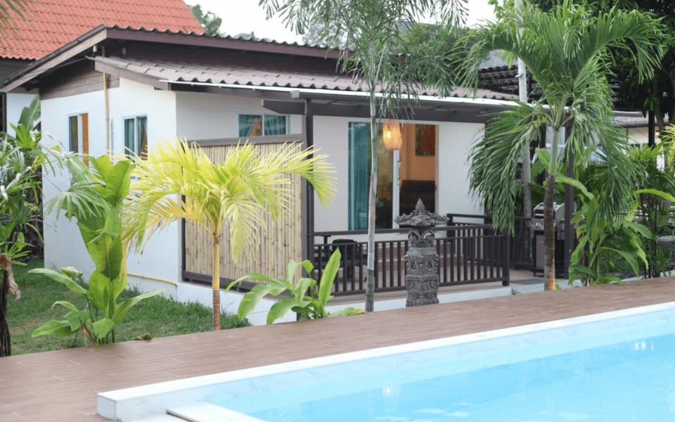 A hostel with a pool and bungalow-style rooms close to Haad Yao beach, perfect for backpackers.